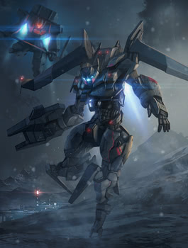 This medium Omniframe, optimized for drop assaults, is favored by pilots seeking higher thrust and glide capability without compromising armor.
