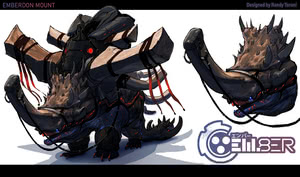 "โฆ As we have seen, the so-called Emberdon is a formidable creature. Stampeding herds have been sighted moving across dormant lava flows. The cause of this behavior is unknown. One thing is clear, nothing short of a fully charged THMPR can stop an Emberdon charge."