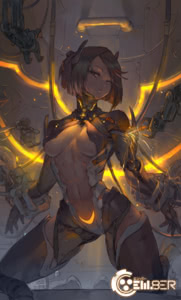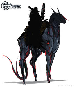 The Gatestrider Pilot and their bond with their Mek runs deep. For a select few who yearn for more, it culminates in the the ultimate fusion of flesh and steel. The boundaries blur, the body sacrificed. The pilot and mek are now one, an angel of death on the battlefield of Em-8ER.